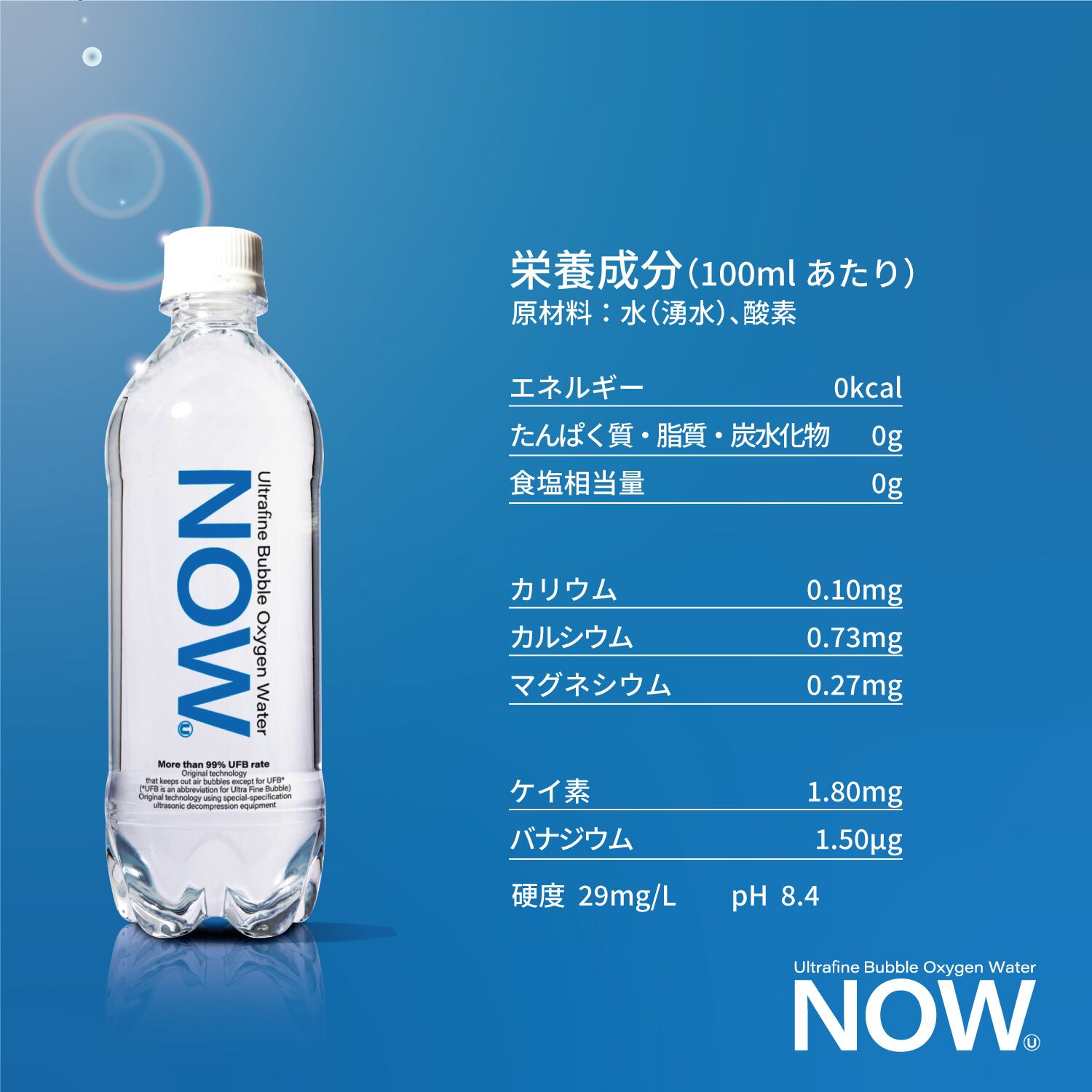 NOW Uには13億個/100mlものウルトラファインバブルという微細な酸素が残存しています。